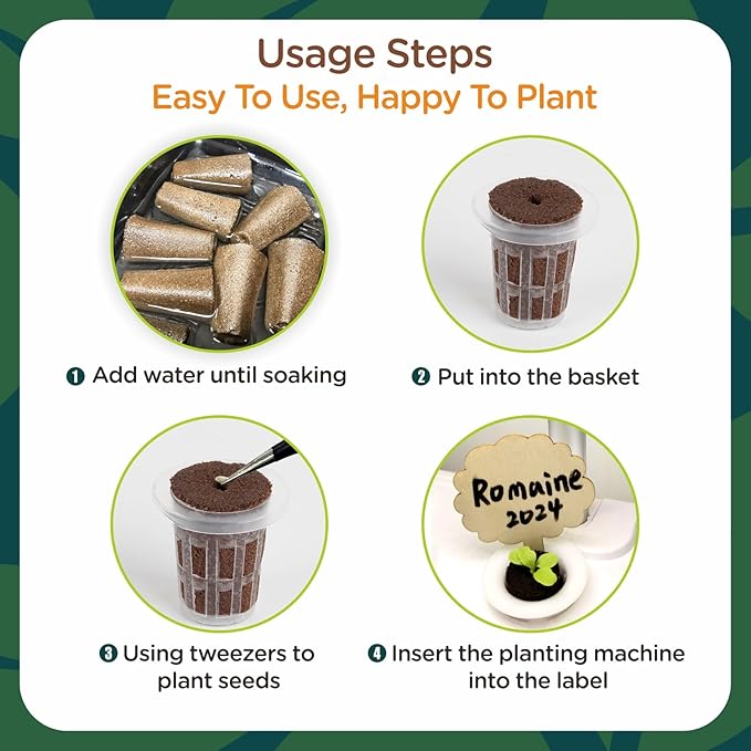 - 【Easy to Use】Hydroponic seed pods are treated with drying technology, easy to store. It's needs to be thoroughly soaked for 3-5 minutes, then place the seeds into the centre hole of the plug, and place the seed starter plug into a seedling sowing dish or potting hydroponic box. Rooted seedlings can be easily transplanted to flower pots or outdoor soil, without damaging the roots of the buds during the transplantation process, significantly improving the success rate of transplantation