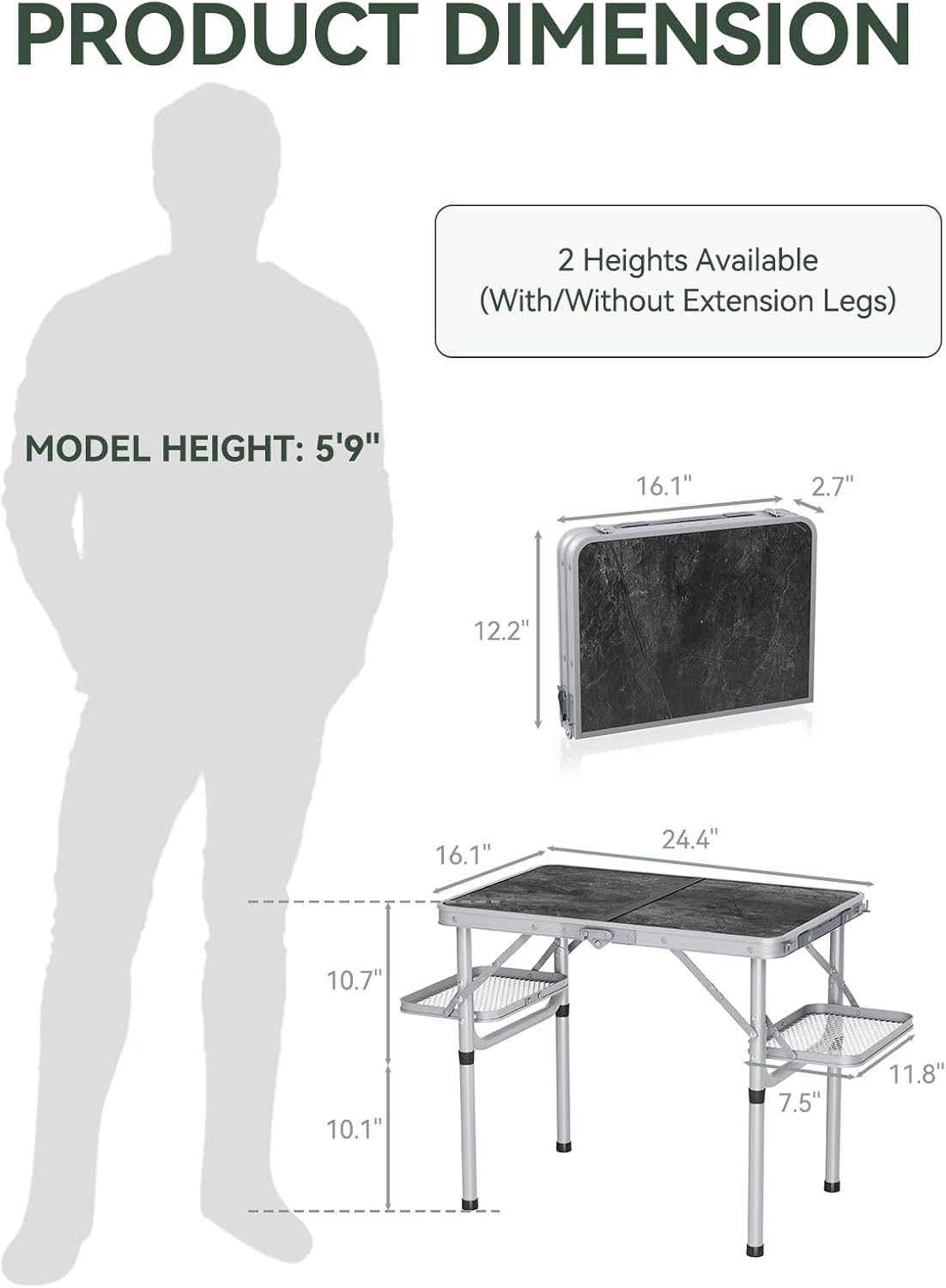 - Perfect Fathers Days Gift. All-purpose Camping Table with Extra Wings. Partitioned use, no more mess. You can also use it as a picnic table, beach table, patio table, bed table,etc. Just take one, you can have them all.