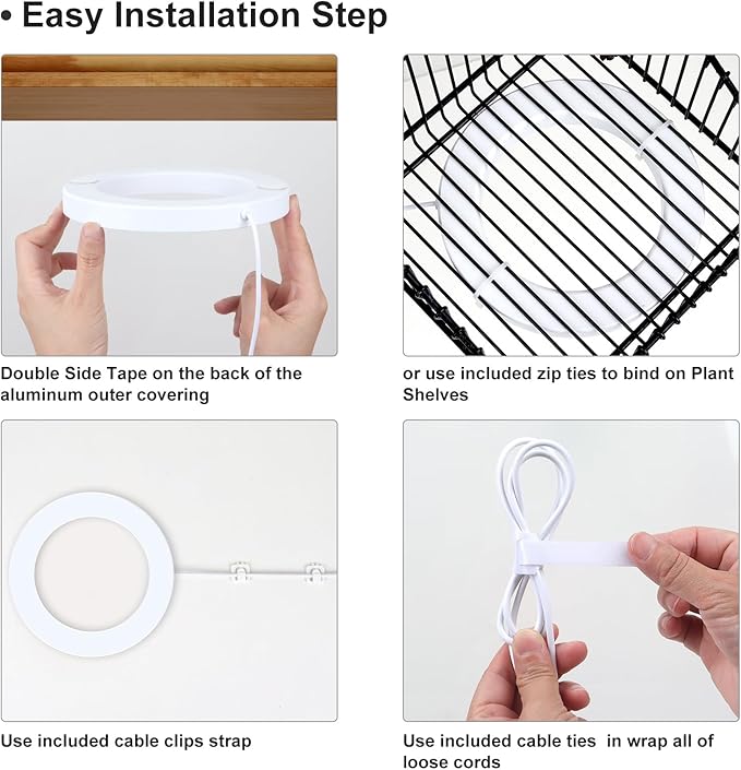 - Easy Installation: Aopeids cordless self adhesive grow light makes installation a breeze. The lightweight Aopeids 2 Halo LED is ideal for indoor use. A 118-inch power cord and included tape make DIY setup effortless