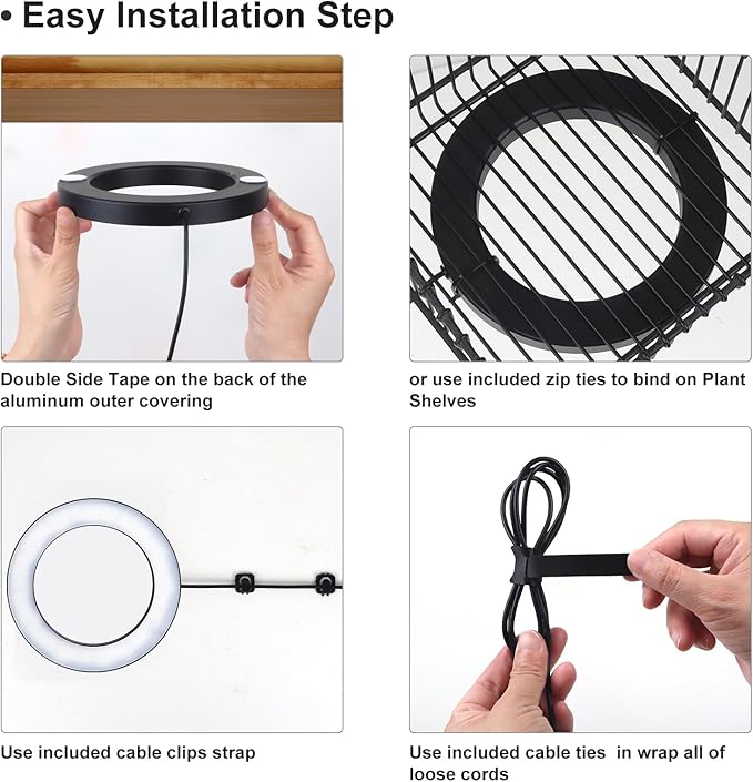 - Easy Installation: Aopeids cordless self adhesive grow light makes installation a breeze. The lightweight Aopeids 3 Halo LED is ideal for indoor use. A 133-inch power cord and included tape make DIY setup effortless