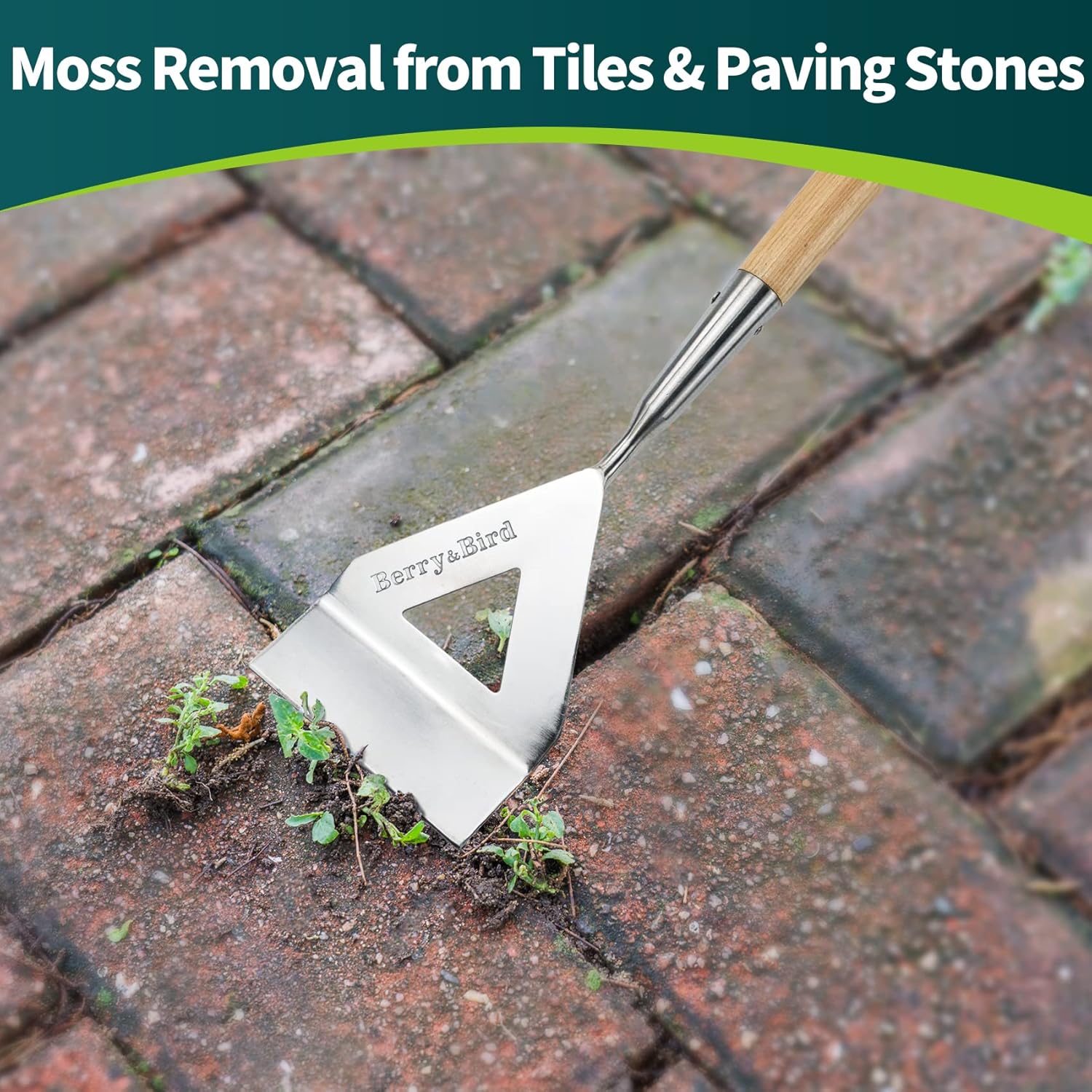 Berry&Bird Dutch Hoe, Stainless Steel Head with Wooden Handle Weeder, Women Heavy Duty Garden Tool for Weeding and Cultivating