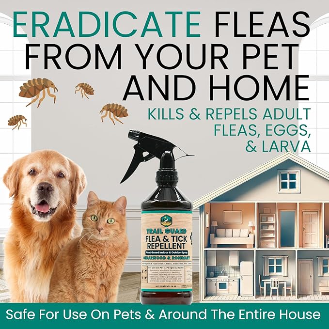 - β PREVENT& ELIMINATE FELA INFESTATIONS: Trail Guards powerful formula effectively stop flea infestations before they start and eradicates existing ones on your dog and around your house. Safe to use on your belongings, it helps stop infestations quickly, brining relief to you & your dog.
