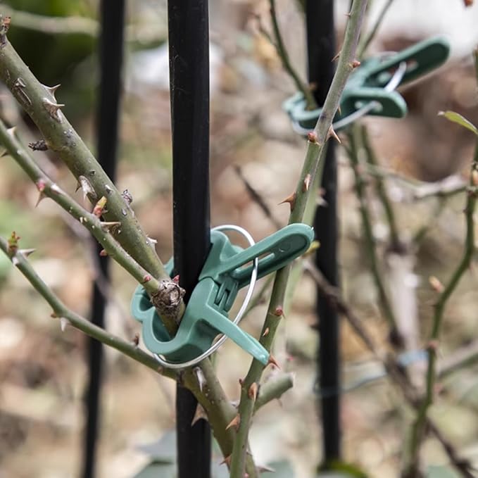 - Material: These garden plant clips are constructed with plastic and heavy-duty spring steel wire to hold plant in place. It is non-rusting which can hold plant stems and seedlings securely to support stakes or trellis. This prevents damage or hinder plants in stormy days. Also you can reuse it in the next season
