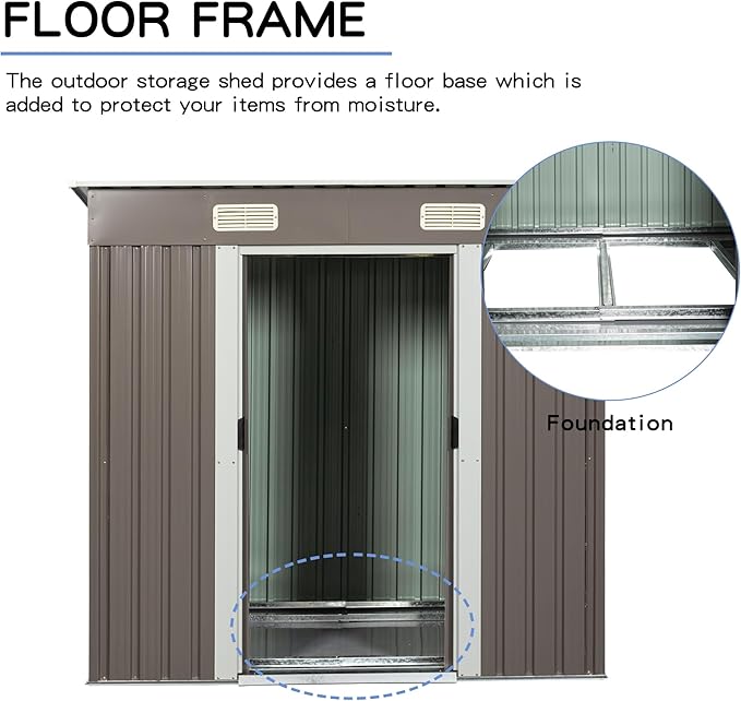 - π‘ All-Weather Storage Shed: This metal garden storage shed excels in all conditions, resisting sun, heat, as well as windy and rainy weather. It features a lean-to structure with a sloped roof that efficiently handles heavy rain and snow by preventing water buildup. Furthermore, four integrated punched vents promote better air circulation to ensure your tools remain in top condition.