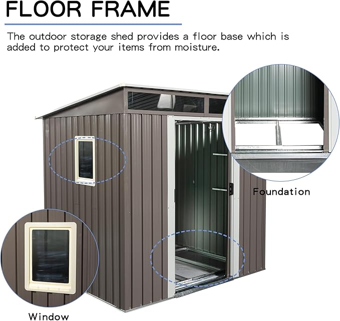 - π‘ Additional Garden Shed: Tired of seeing your lawn mower, additional hoses, and fertilizer bags taking up space in your garage or basement? Our 6x5 ft outdoor metal storage shed, equipped with transparent panel windows, not only provides extra space but also ample lighting for organized tool storage. Plus, this metal garden shed protects your equipment from wind and rain, reducing the risk of rust when stored outside.