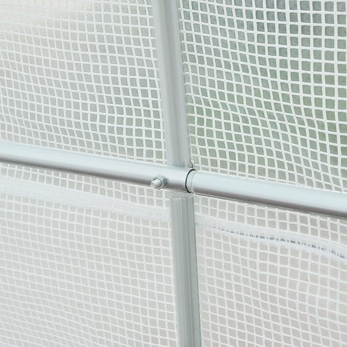 - Transparent Plastic Cover: Shield your plants effectively with our tunnel greenhouse's 140gsm PE cover, which allows 85% sunlight penetration while protecting against UV damage. The cover features a tear-resistant reinforcement grid. 6" extended edges enhance stability and effective rainwater sealing.