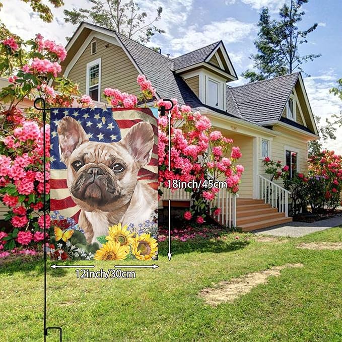 French Bulldog American Flag Patriotic Sunflower Dog Garden Flag Welcome Party Outdoor Outside Decorations Picks Home House Garden Yard Decor 12x18 Inch