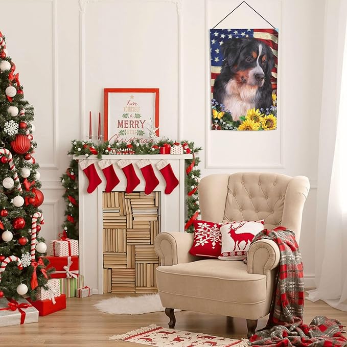 Bernese American Flag Patriotic Dog Garden Flag Welcome Party Outdoor Outside Decorations Picks Home House Garden Yard Decor 12x18 Inch