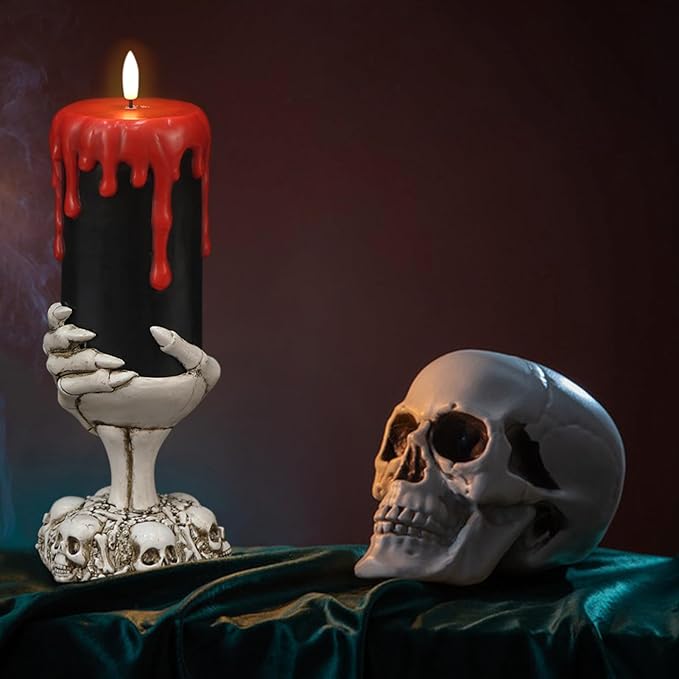 - Ghost Hand Candlesticks:The bases feature spooky hands and skulls.Create a spooky ambiance with these ghost flickering flameless LED candle sits suitable as the Halloween decoration., It would enhance this festive atmosphere for your friends and lovely family