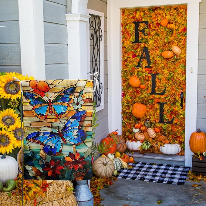 - ✔ 【Premium Quality】-- The autumn butterfly yard flag is made of sturdy all-weather polyester, double layer stitching and reinforced corners improve durability.