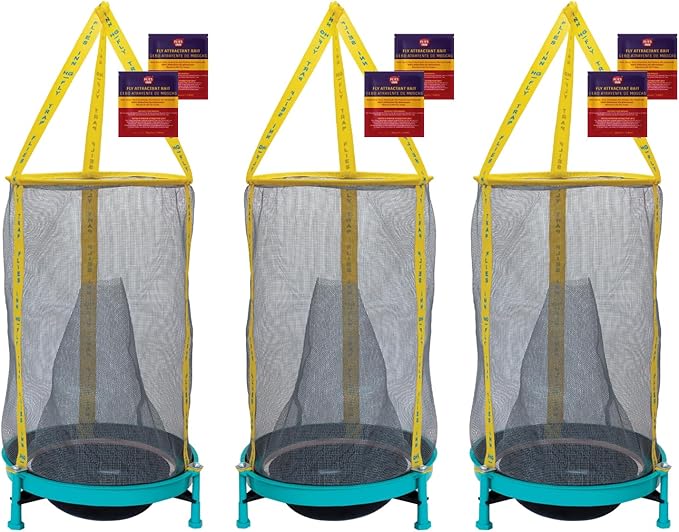 EZ Fly Cage Ranch Fly Trap with 2 Flies Inn Fly Attractant Bait Refill, Low Odor, Reusable, Built to Last for Years (3 Trap+ 6 Baits, 1)