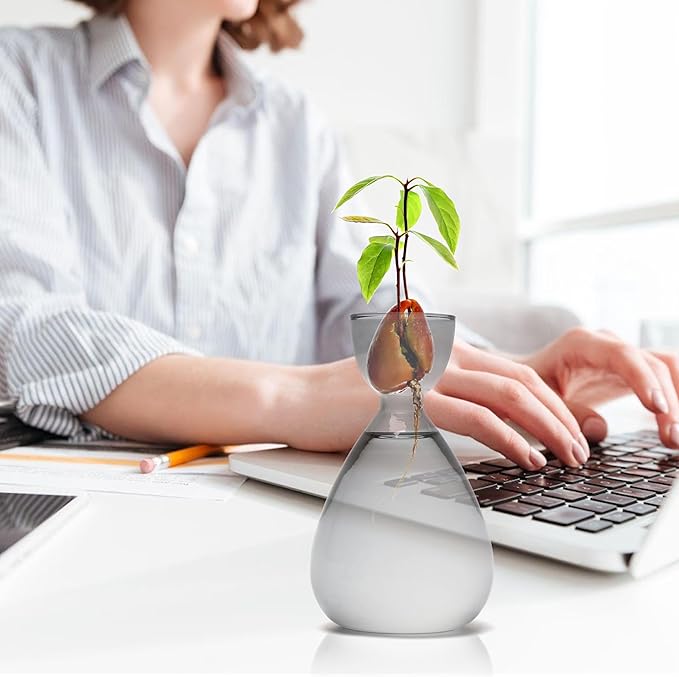- Cute Design:Avocado seed starter planter vase has pure and simple fashion design,narrower on the neck,can be perfectly blended with avocado seed;The small diameter neck is perfect for lifting and moving.
