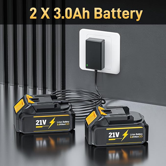- [Advanced Batteries X 2] Aokia cordless leaf blower has 2 long-lasting and durable batteries that can operate continuously. Up to 21V-3.0Ah batteries, this battery blower can work 40minutes with two fully charged batteries.