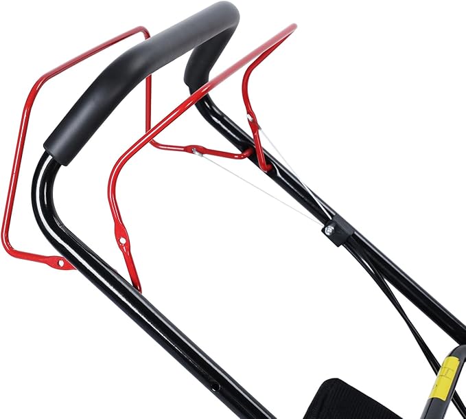 - Ergonomic Foldable Handle: Featuring an ergonomic foldable handle design, the gas lawn mower allows you to quickly fold the handle in the center of the mower for compact storage when not in use. Self-propelled lawn mower has a 7-position single lever and includes height adjustments from 9.85 to 29.55 inches for a fresh-cut lawn.