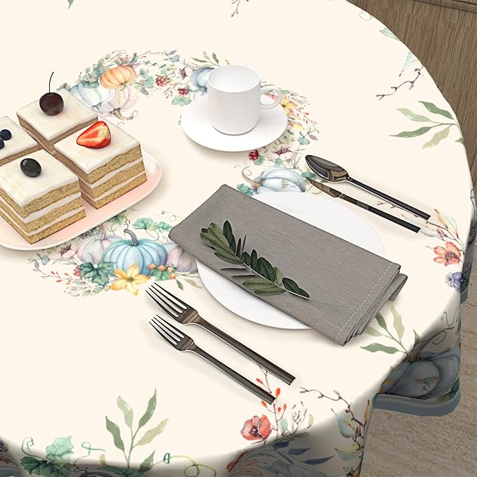 - 【SIZE & FEATURES】: This autumn decorative tablecloth has a diameter of 60 inches and will fit a table of stand size. It features a spill-resistant fabric that protects your table and furniture from liquid, scratches, stains and sun ray.