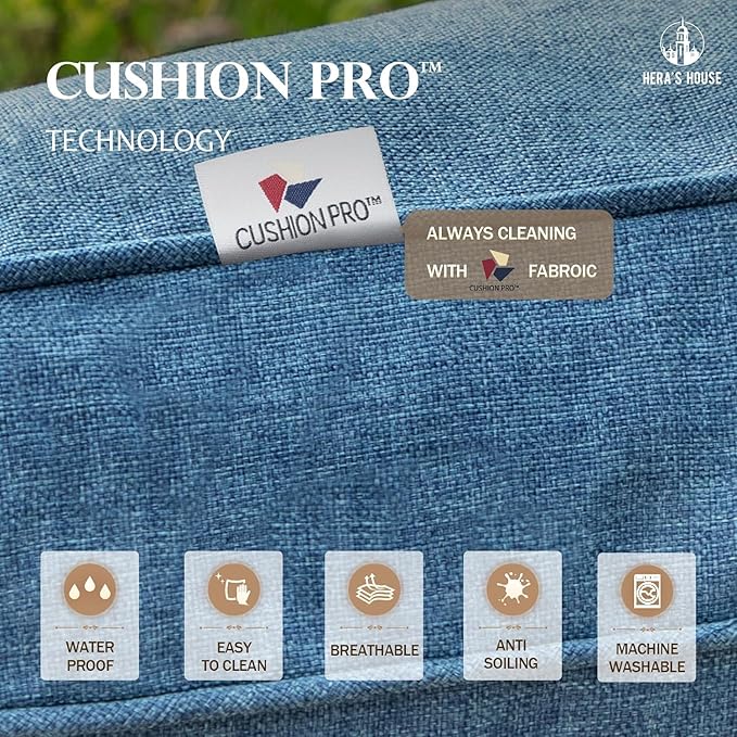 - 【ALL WEATHER USE】Special CUSHION PRO technology applied on the fabric of this conversation set. It makes the dirts be easily wiped down. Water-proof and oil-proof perfectly for all seasons use.