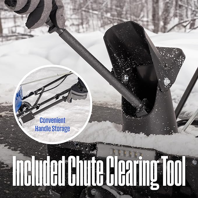 - EASY & EFFECTIVE: Low maintenance battery powered motor, cord-free and easily maneuverable, yet powerful enough to throw snow 25 feet; LED light for winter nights; 180 degree adjustable snow thrower chute