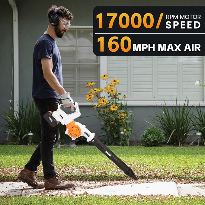 - The LIGO 20V Cordless Leaf Blower is powered by a robust 4.0Ah battery, delivering a powerful 450CFM high-speed airflow that reaches up to 160MPH (80m/s), making it perfect for quick and efficient garden cleaning with its 280KM/H DUAL TURBO AIRFLOW technology.
