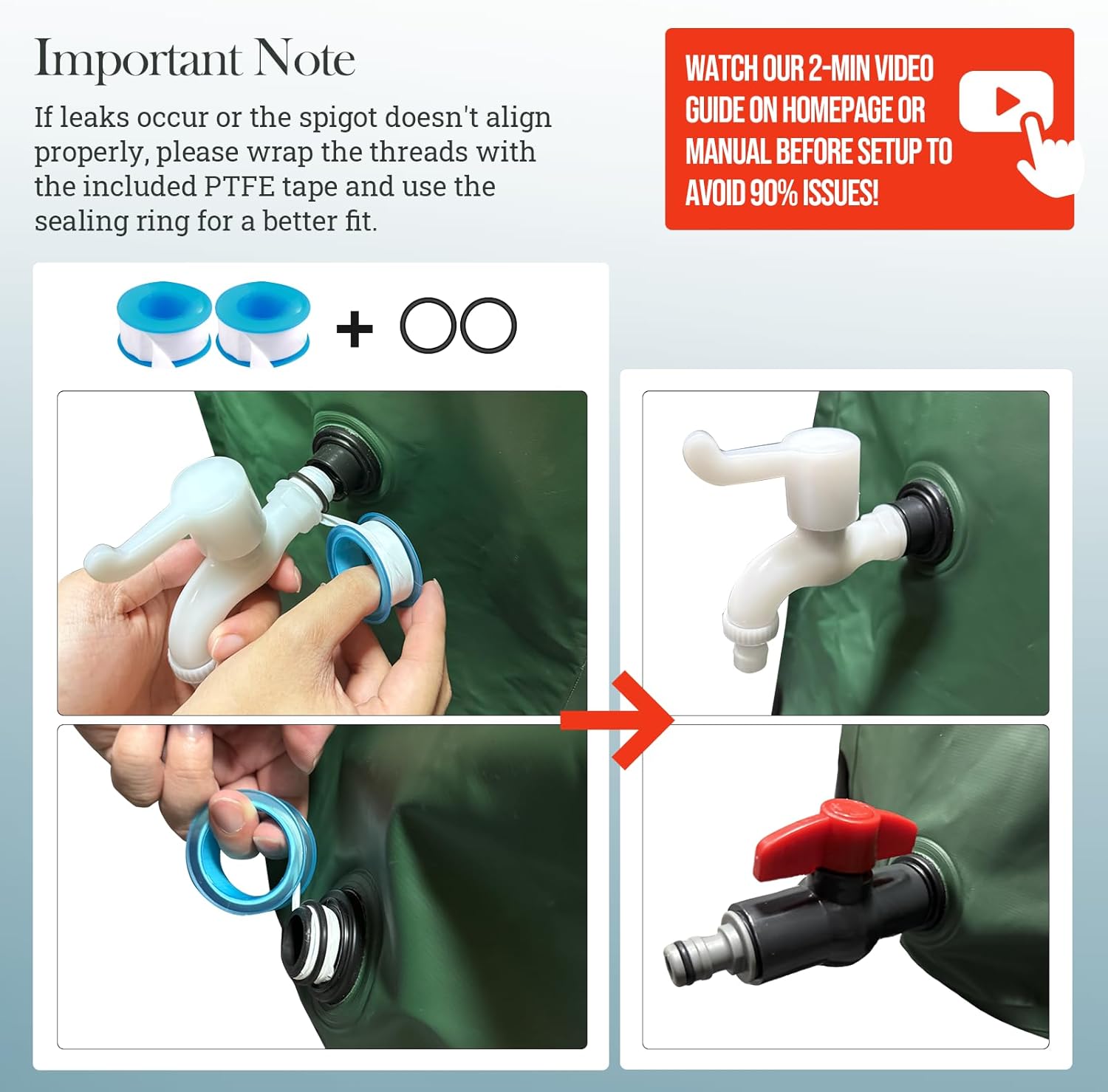 • 【Convenient & Easy to install】Thanks to the collapsible design, our rain barrel spigot kit can be stored in small places like cabinets or sheds when not in use. You can also put it in your car trunk for outdoor activities and farm irrigation, so you don't have to carry lots of heavy drinking water. Installation is easy and quick, with no special tools needed. Even first - time users in remote outdoor areas can set it up without trouble