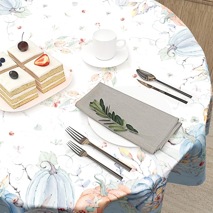 Giwawa Fall Pumpkin Blue Round Tablecloth 60 Inch,Autumn Harvest Thanksgiving Farmhouse Decorative Table Cloth Washable Table Cover for Kitchen Party Picnic Dinner Home Decor