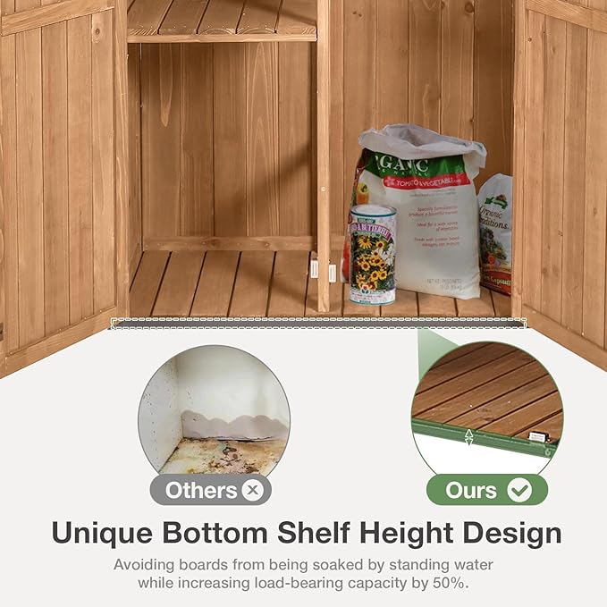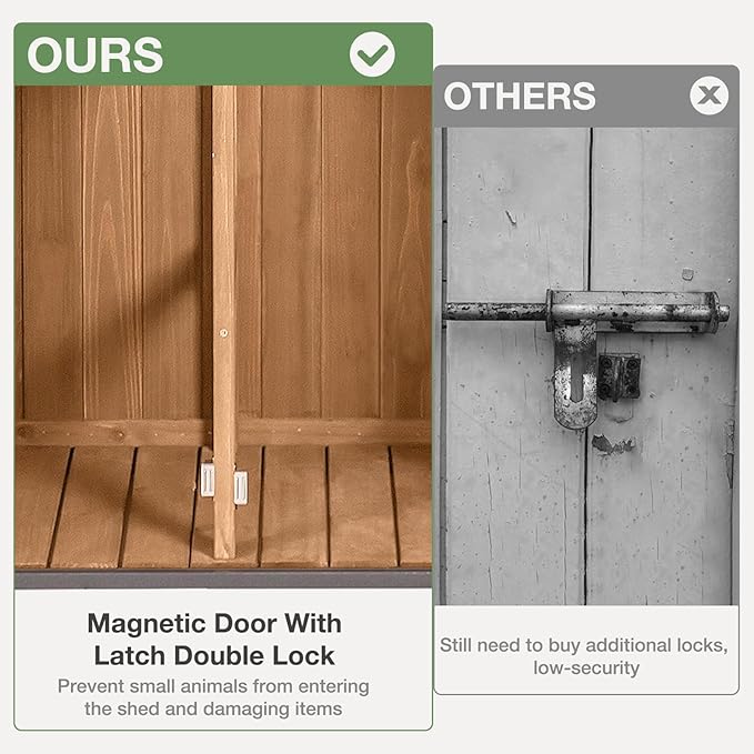 - 🛖【Stable Construction】: Our outdoor garden sheds are made of natural fir wood and metal brackets that are more than three times as stable as other products, ensuring they withstand various weather conditions for long-lasting durability