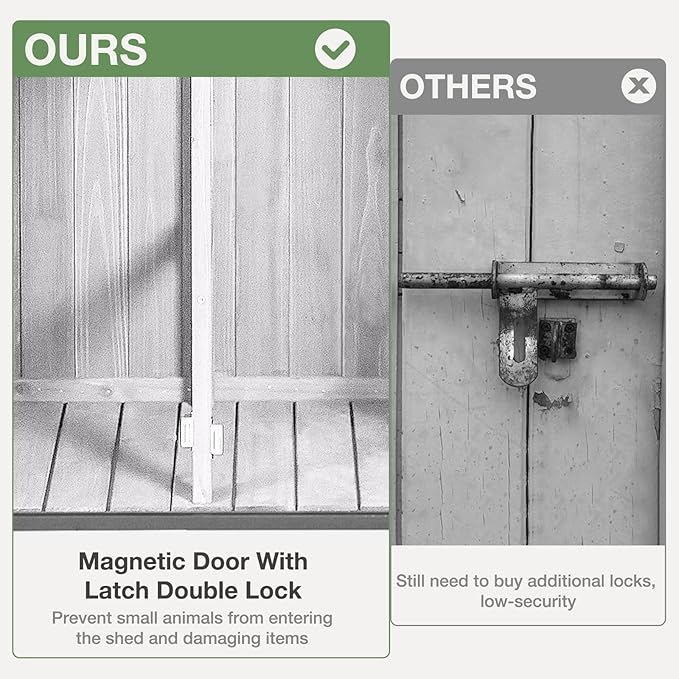 - 🛖【Stable Construction】: Our outdoor garden sheds are made of natural fir wood and metal brackets that are more than three times as stable as other products, ensuring they withstand various weather conditions for long-lasting durability