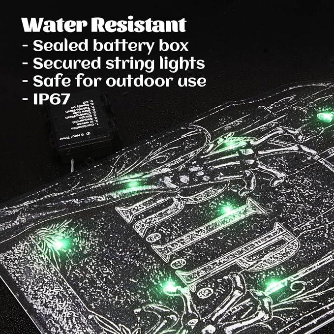 - ENHANCE THE EERIE VIBE - Green LED lights make tombstones visible at night.