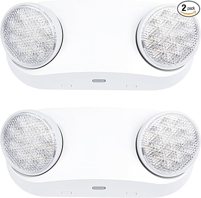 GRUENLICH LED Emergency Light with Battery Backup, 2 Adjustable Bug Eye Heads Lights, US Standard, AC 120-277V, Hardwired Commercial Emergency Exit Light for Business, 2-Pack
