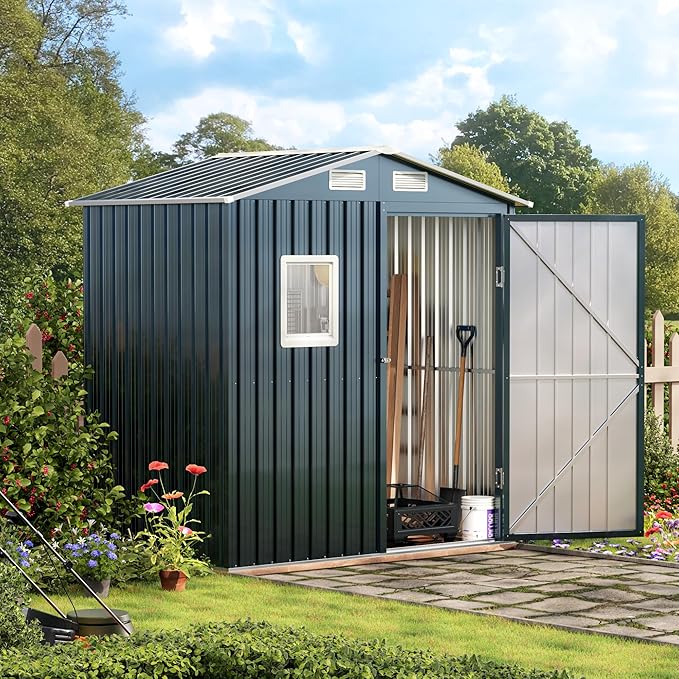 - Sturdy Metal Build: Crafted from thicker, robust metal panels, this shed provides exceptional strength and durability. Its solid construction guarantees lasting reliability and safeguards your possessions effectively.