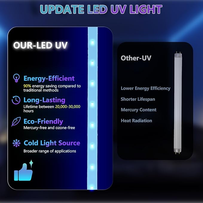 - 3.Long lifespan LED lights. Compared with ordinary UV lamps, LED lamps are less prone to damage and can work for a very long time. It will save you a lot of money, and if there is no sunlight, you can directly use USB charging.