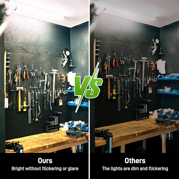 - [Wide Application]: The super bright LED shop lights are suitable for different personal and commercial usage scenes, such as for garage, workshop, utility shop, warehouse, storage room, basement, under cabinet, closet, workbench area, office general lighting, supermarket, barn lighting, etc.