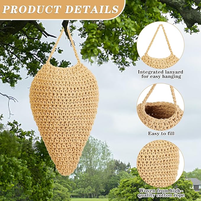 - High-Quality Materials: These crochet decoy wasp nests are made of high-quality hemp rope. They are reliable, durable, and the rustic touch can also enhance the beauty of the surrounding environment. Each artificial wasp nest has an integrated hook that can be easily hung anywhere