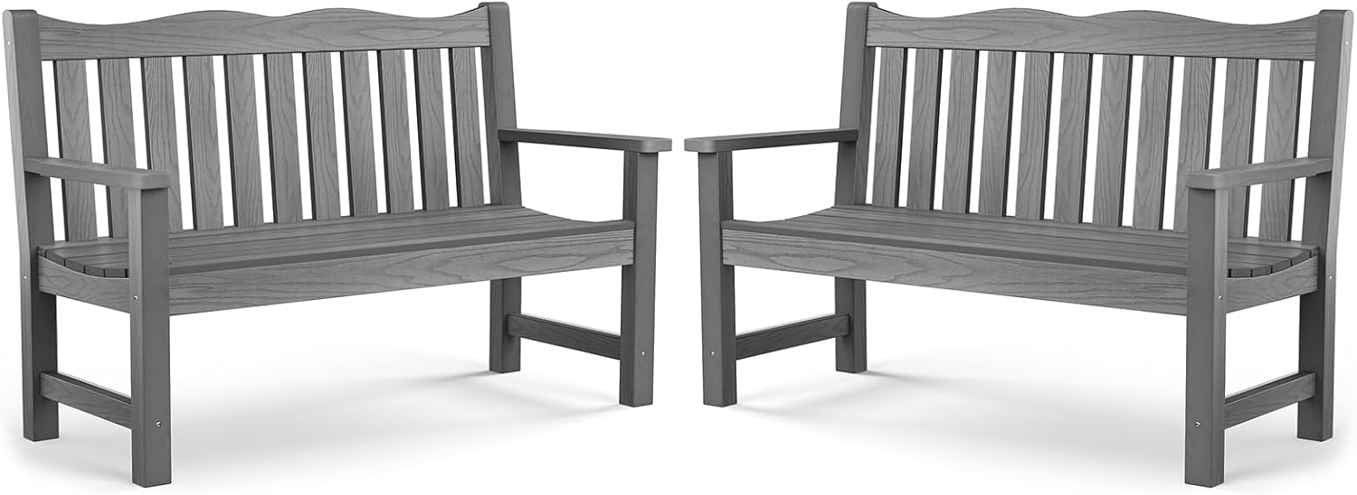 Outdoor Bench, Waterproof Garden Benches Set of 2, Never Rot or Fade, for Garden, Porch, Backyard and Deck, Grey
