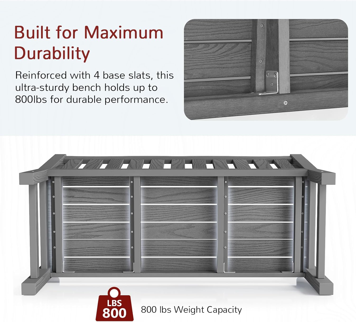- 【800 lbs Weight Capacity】The garden bench has passed the 800 lbs load testing.