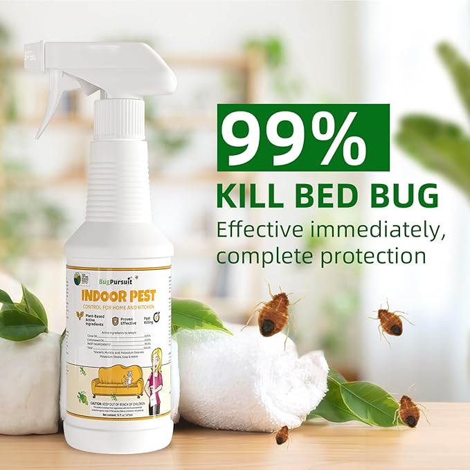 - Powerful Bed Bug Eliminator: BugPursuit Bed Bug Spray features carefully selected botanical extracts to powerfully eliminate stubborn bed bugs. Research and verification by authoritative institutions confirm that this product ranks first in effectiveness among 10 tested insecticides, with performance surpassing that of traditional chemical pesticides. Formulated with essential oils as its base, it is the ideal choice for protecting homes, gardens, and other spaces from bed bug infestations.