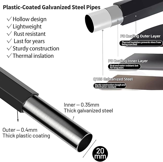 - [Sturdy Structure] - Made from plastic-coated galvanized steel, the garden arch trellis offers excellent insulation and rust resistance for long lasting, meanwhile prevents vine scorched. The trellis features four sturdy feet that enhance load-bearing capacity, ensuring stability and durability in various weather conditions without shaking.