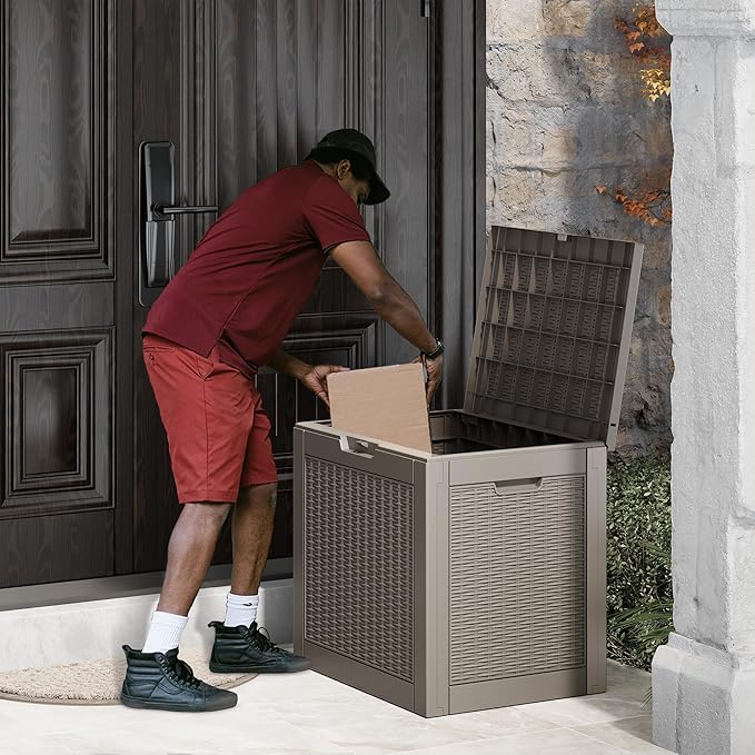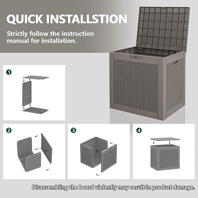 - WATERPROOF AND UV PROTECTION W - Crafted from durable resin material, this outdoor storage box is designed to withstand various weather conditions. It is waterproof, fade-resistant, and resistant to bending or breaking due to prolonged UV exposure, ensuring long-lasting use.
