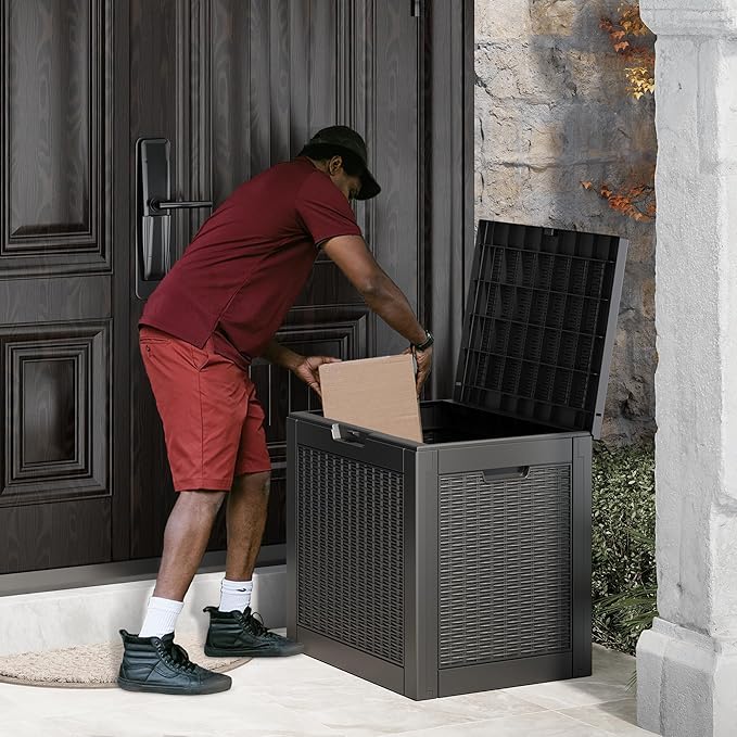 - WATERPROOF AND UV PROTECTION W - Crafted from durable resin material, this outdoor storage box is designed to withstand various weather conditions. It is waterproof, fade-resistant, and resistant to bending or breaking due to prolonged UV exposure, ensuring long-lasting use.