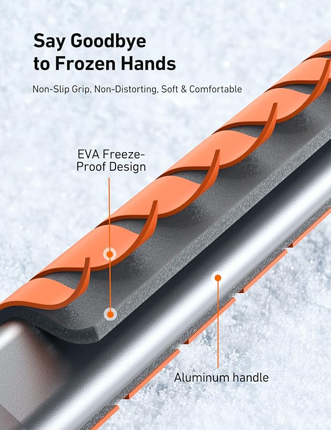 - Ergonomic Freeze-Proof EVA Grip: The EVA handle ensures an effortless snow-shoveling experience. Its ergonomic design provides an anti-slip grip, making it comfortable to hold while preventing your hands from getting cold