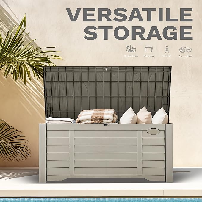 - Multi-functional Storage: The outdoor deck box's unique louvered wheel design complements your other patio furniture, making it ideal for storing outdoor cushions, pool accessories, and gardening tools