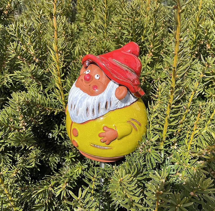 Ceramic Garden Decor - Gnome Lawn stake - Outdoor statue - Perfect, unique gifts for gardeners woman, men, yard gifts - Handmade, Frostproof
