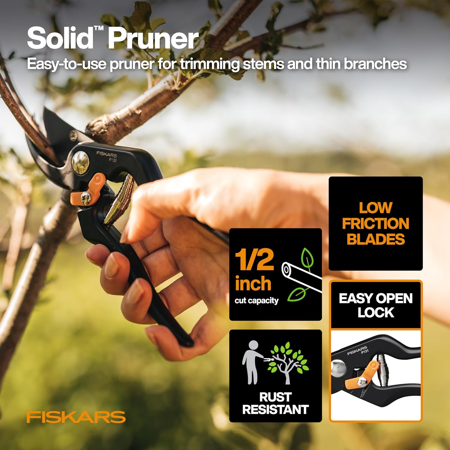 - Pruner blades are made of precision-ground steel and feature a low-friction coating that resists rust and gumming, while the durable, cast-aluminum handle includes an easy-open lock to protect the blade during transport and storage