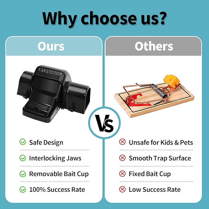 - Safe & Reliable Design - Tunnel rat traps ensure a rodent-free environment for your children and pets. Designed for maximum safety, all trapping mechanisms are securely enclosed within the trap, making it safe and effective for homes with pets and kids; The removable bottom bait cup enhances the safety and security of setting up chipmunk traps