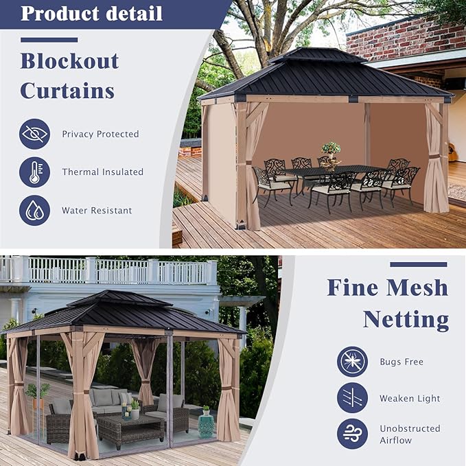 - PRIVACY LIVING SPACE — Hang the khaki gazebo curtains for intimate gatherings or open them wide to embrace the beauty of your surroundings. The waterproof curtain of the outdoor gazebo also protects your pavilion away from rain drop, granting versatility for any occasion. Its washable and replaceable design also ensures lasting privacy for any occasion.