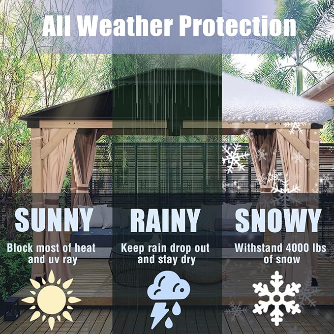 - EXCEPTIONAL CUSTOMER SERVICE — Our dedicated support team is available 24/7 to ensure prompt responses to your inquiries or concerns. If any accessories should be missing, please reach out and our professional customer service will address the issue promptly. With every purchase of our backyard gazebo, you're covered by a comprehensive 5-year warranty for added peace of mind.