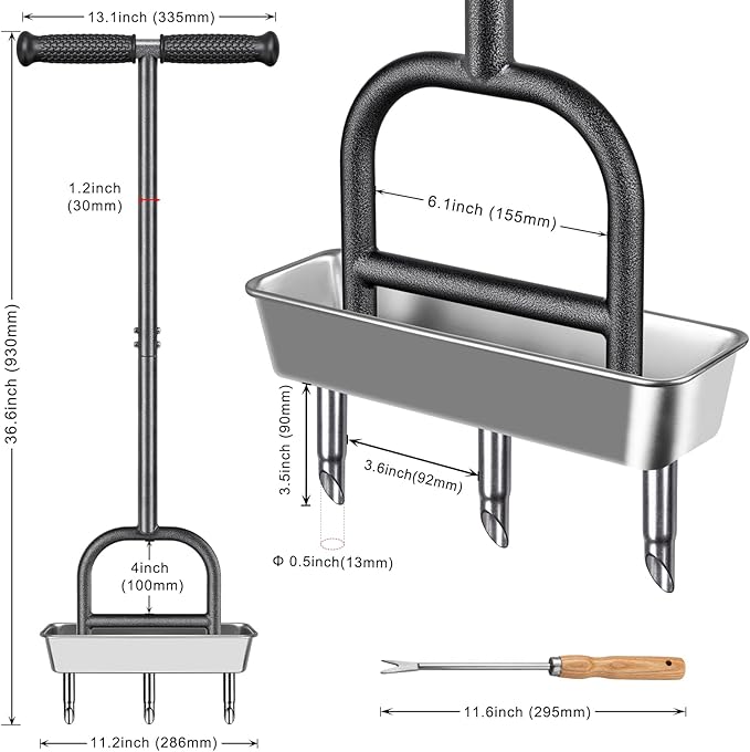 - 12ββ Weeding Tool: The lawn aerator comes with a 12ββ hand tool that can be used to clean the aerator. It is also useful for transplanting seedlings and weeding, making it very convenient.
