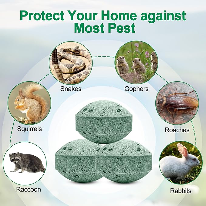 - Powerful and Effective: The mint skunk repellent ball contains strong, natural ingredients from plant essential oils that emit an uncomfortable smell for raccoon, effectively drive away various rodents types, including raccoon, skunks, moles, squirrels, groundhog and more
