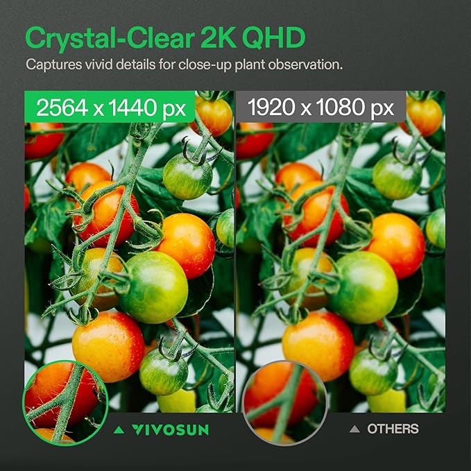 - 2K Crystal Clear: The 2K 4MP QHD ultra-clear lens captures vivid details, letting you observe your plants up close; Specially adjusted for grow setups, it offers a true-to-life view.