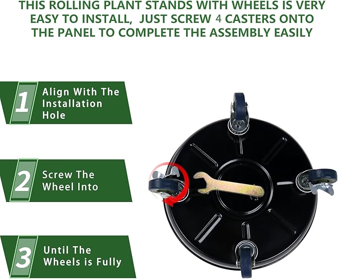- 【EASY INSTALL】This Rolling Plant Stands With Wheels Is Very Easy To Install, Just Screw 4 Casters Onto The Panel To Complete The Assembly Easily.