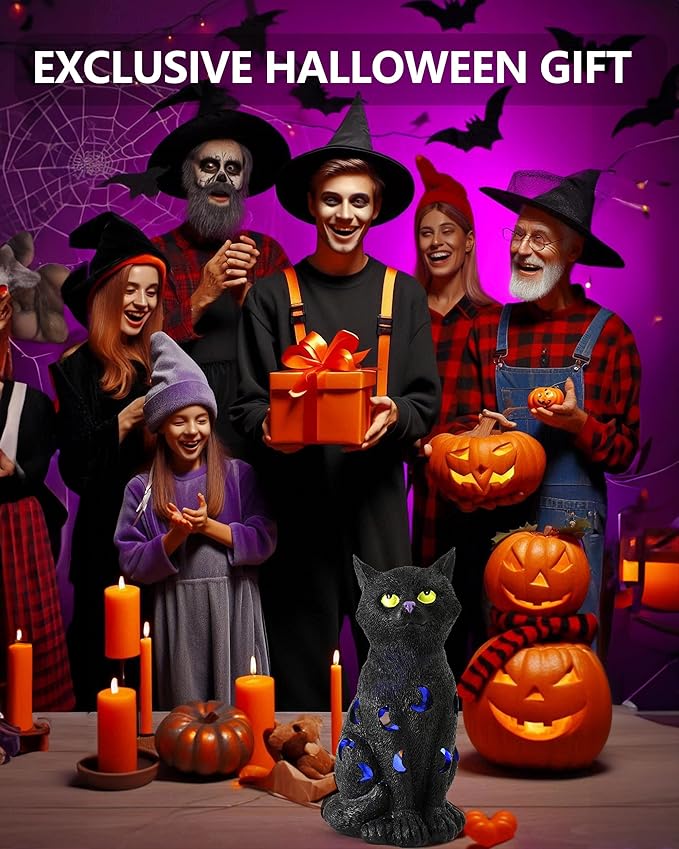 - Durable and Long-Lasting: Made from high-quality resin, this black cat figurine is built to withstand the test of time, ensuring your Halloween decor remains spooky year after year.